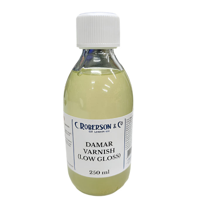 Composed of damar gum resin and turpentine, this damar varnish is of low gloss finish, and dries hard and clear. Apply the varnish in thin layers to achieve best results in drying and finish. It is removable with white spirit or turpentine, making it a great temporary protective varnish.